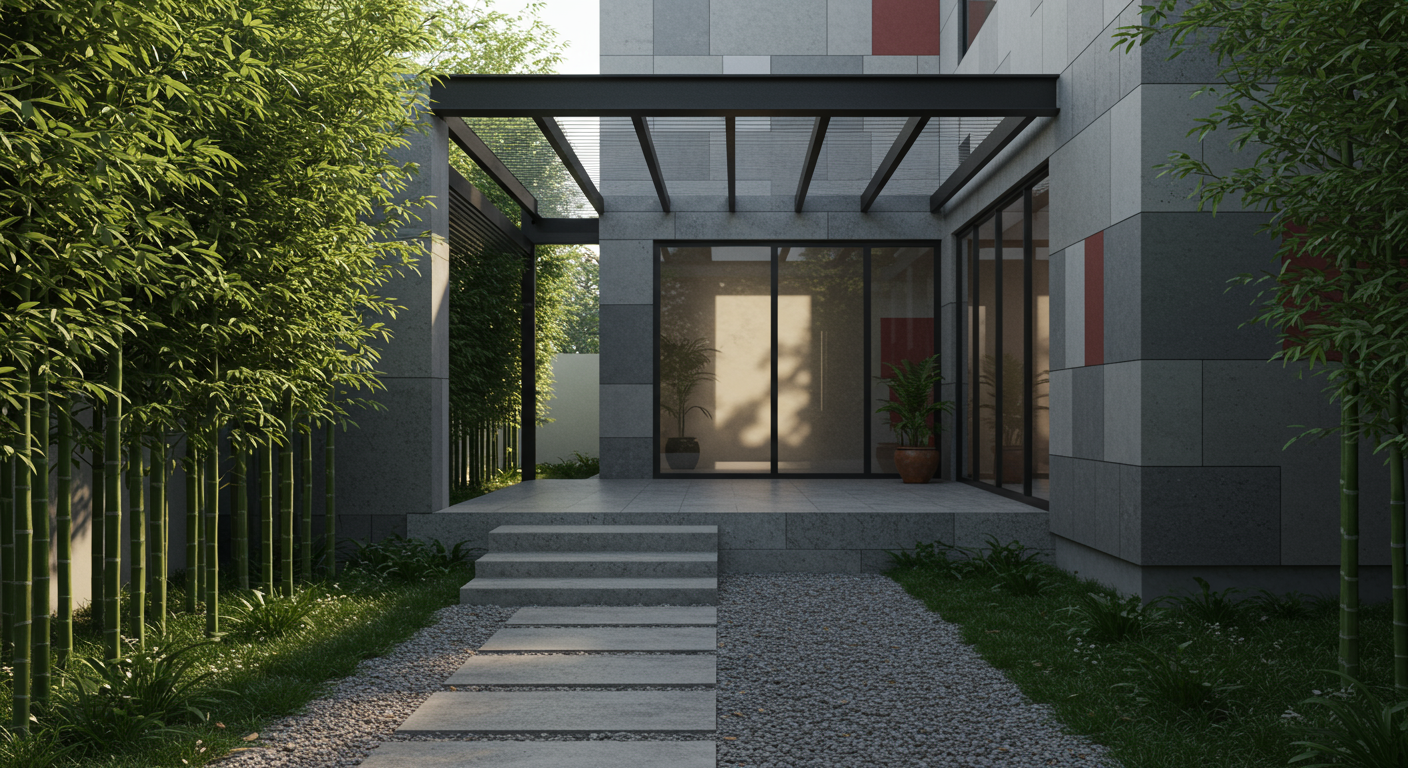 Located in L.A.’s Pacific Palisades neighborhood, the Eames House is a landmark of midcentury-modern architecture. Constructed in 1949 by husband-and-wife team Charles and Ray Eames, the modular house consists of two glass-and-steel rectangular boxes: one served as their longtime residence, while the other was their studio. The facades are comprised of black-painted grids with different-sized glass inserts (clear, translucent, or wired), Cemesto panels, stucco, aluminum, and specially treated panels, some painted white or in primary colors that lend a Mondrian-style touch to the exterior.
