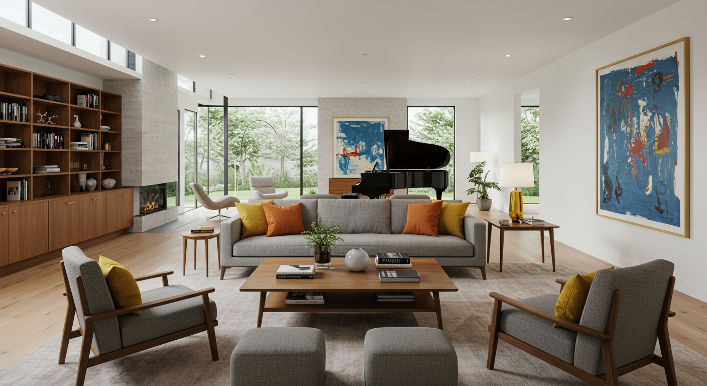 Frank Lloyd Wright remains the most influential architect of the midcentury aesthetic. The specific design ethos—which is not just buildings built in the ’40s and ’50s—includes elements such as clean lines, floor-to-ceiling windows, and open floor plans.