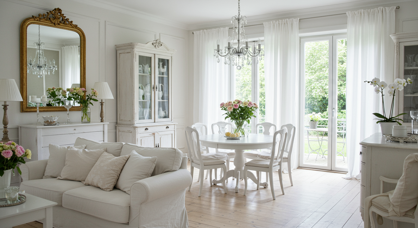 Not too casual, not too stuffy, French country is a luxuriously relaxed style with history dating back to King Louis XV in France. The look features a combination of vintage French furniture and rustic touches such as wood beams.