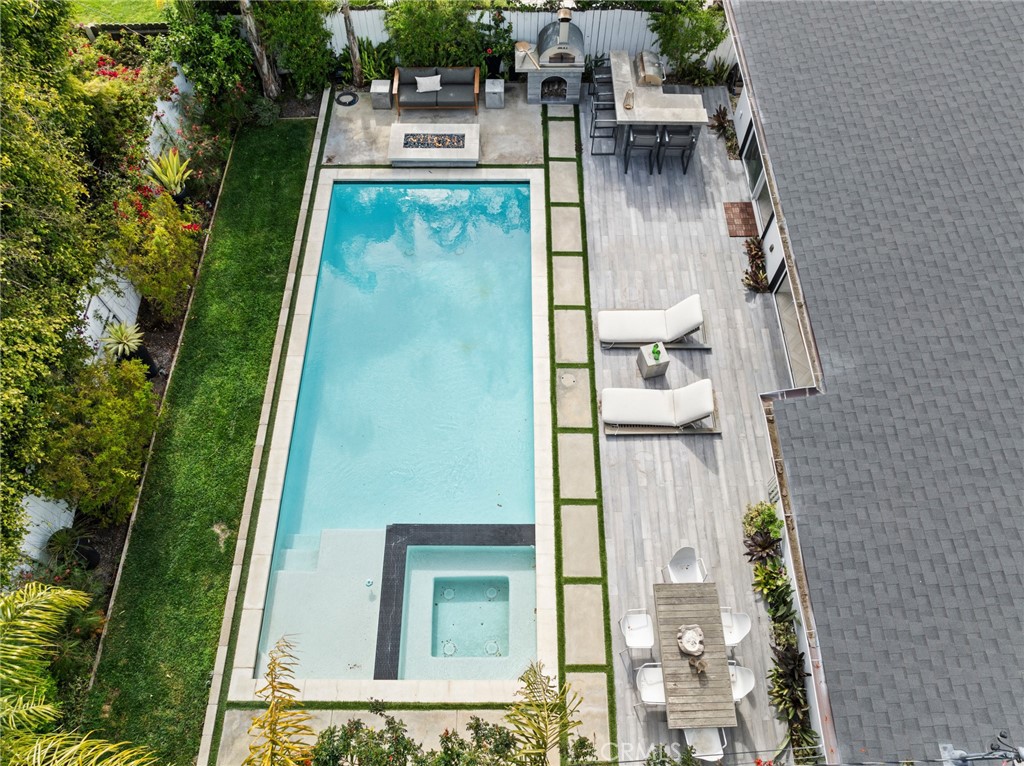 Among the well-appointed and comfortable bedrooms, your generous primary suite is a secluded sanctuary, featuring dual closets, direct patio access, and a luxurious ensuite with a steam shower. Outside, the resort-inspired backyard is nothing short of spectacular--dive into the saltwater pool, unwind in the spa, sunbathe on the Baja ledge, or converse around the raised firepit. A custom pizza oven, BBQ grill, and bar seating make alfresco get-togethers unforgettable.